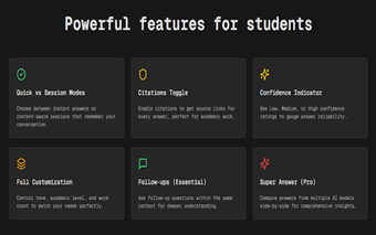 مع واجهتها سهلة الاستخدام، تتيح Assignmate AI للمستخدمين التقاط المعلومات من مصادر متنوعة بسهولة، مما يضمن أن تكون الاستجابات دقيقة ومدعومة بمراجع موثوقة. تساعد دمج درجة الثقة المستخدمين في تقييم موثوقية الإجابات المولدة، مما يعزز عملية اتخاذ القرار. هذه الأداة مفيدة بشكل خاص للطلاب والباحثين والمحترفين الذين يسعون لتحسين جهودهم في استرجاع المعلومات وتوثيقها.
